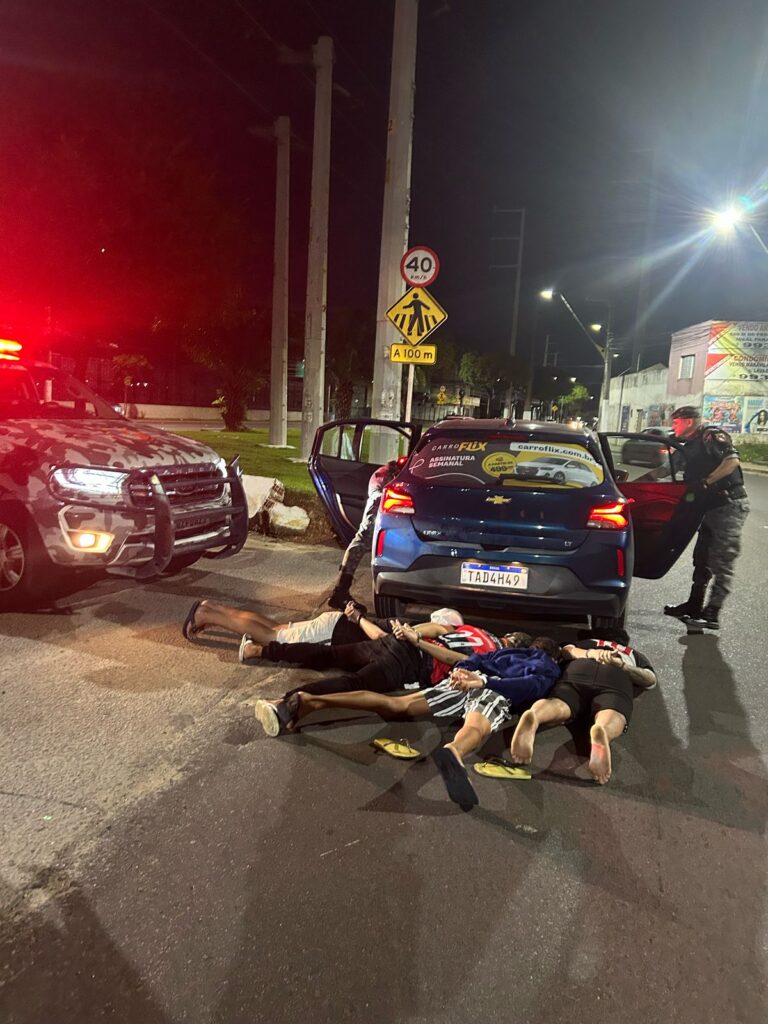 Durante a operação, os policiais encontraram no carro um simulacro de pistola na cor preta e duas armas brancas, itens usados para intimidar a vítima. Um vídeo chocante que circula nas redes sociais escancara a gravidade da situação: nas imagens, os jovens aparecem rindo e ameaçando o motorista, que dirige sob a mira de uma faca apontada contra ele. Em tom de deboche, os criminosos perguntam à vítima “como é ser roubado”, e dizem para ele “ficar de boa”, enquanto o homem, visivelmente tenso, tenta manter o controle do veículo.