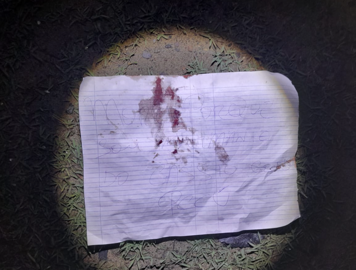 Ao lado do corpo, o seguinte bilhete foi encontrado: “Morri porque era informante do Cássio gordo PCC”. A mensagem deixada levanta a suspeita de que a vítima seria membro do Comando Vermelho (CV) e teria traído a facção, levando conversa para seus rivais. Até o momento, essa é a maior hipótese da motivação do crime.
