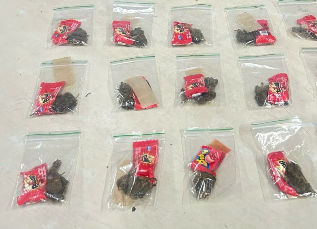 Na ocasião, eles jogaram uma pochete com um revólver calibre 38 e quatro munições intactas, além de várias trouxinhas de maconha e cocaína embaladas que com gomas de mascar (chiclete).