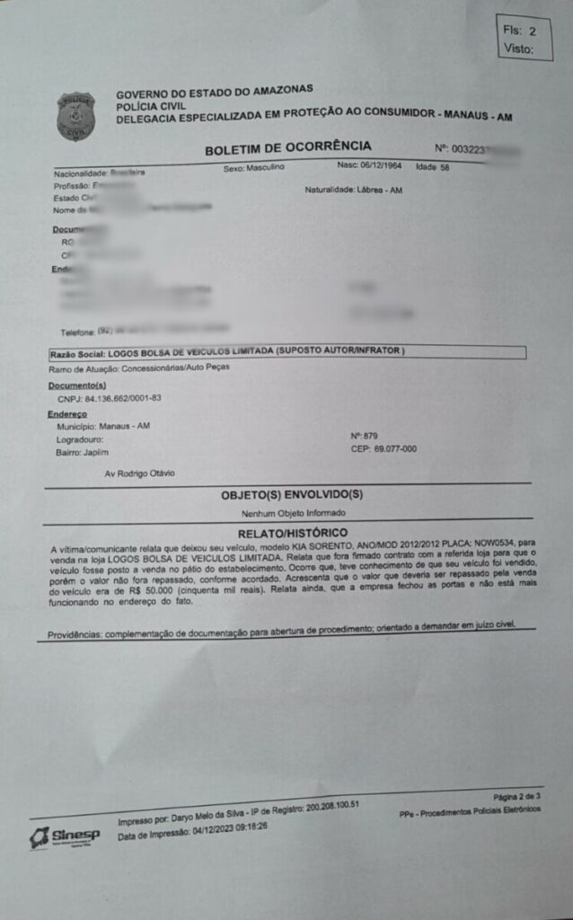Clientes denunciaram com exclusividade ao Portal CM7 na última segunda-feira (4) que foram vítimas de um golpe da empresa, que vendeu carros e deixou de pagar os proprietários. O local, situado na avenida Rodrigo Otávio, bairro Japiim, fechou suas portas na última sexta-feira (1°), deixando clientes e credores no prejuízo. A maioria dos clientes já registrou Boletins de Ocorrência (BO) e os prejuízos ‘mais baixos’ giram em torno de R$ 50 mil para pessoas que já estavam passando dificuldades financeiras.
