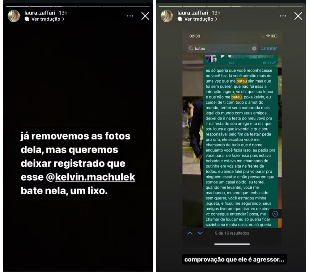 Em uma conversa por WhatsApp, Laura expressava seu descontentamento, alegando que Kelvin a havia machucado durante uma discussão. Ela mencionava que tentou evitar a confusão e pediu para que ele parasse, mas acabou sendo ferida. A exposição nas redes sociais gerou revolta e indignação por parte dos seguidores da jovem.