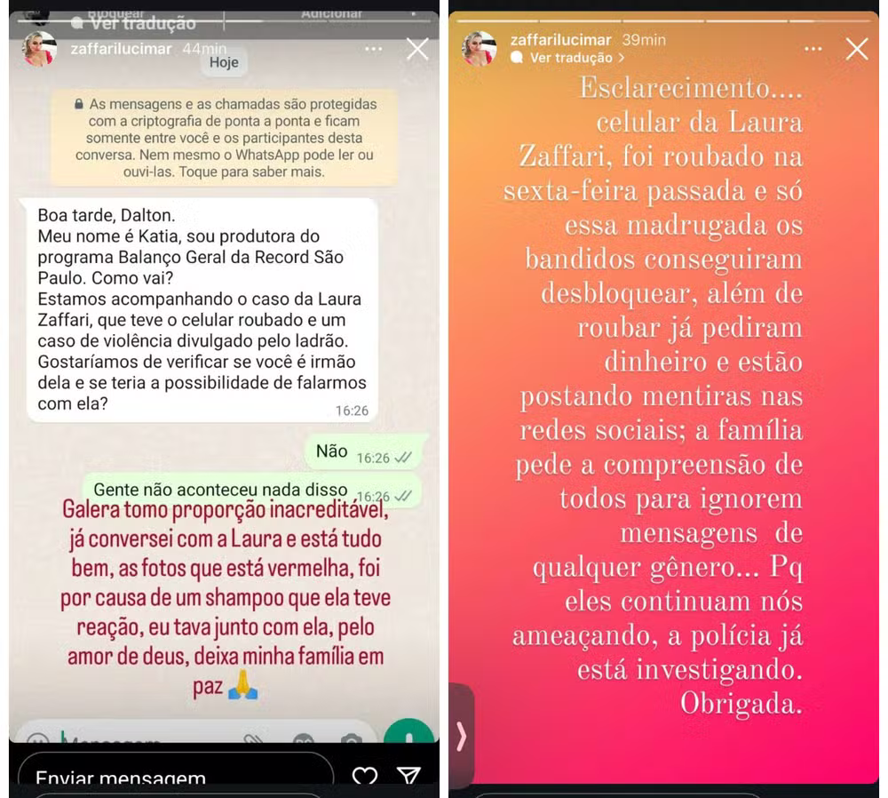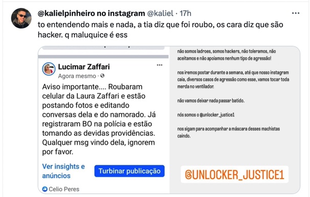 A Polícia Civil do Paraná confirmou a investigação do roubo do celular de Laura e também está apurando a suposta agressão denunciada pelos criminosos. A família pede compreensão e solicita que mensagens desse tipo sejam ignoradas. O texto inicialmente divulgado também foi seguido por uma mensagem de um grupo hacker chamado “Unlocker Justice”, assumindo a autoria das publicações, repudiando a agressão e prometendo revelar outros casos durante a semana. A situação continua a se desenrolar, e a sociedade aguarda esclarecimentos adicionais sobre esse tumultuado episódio.