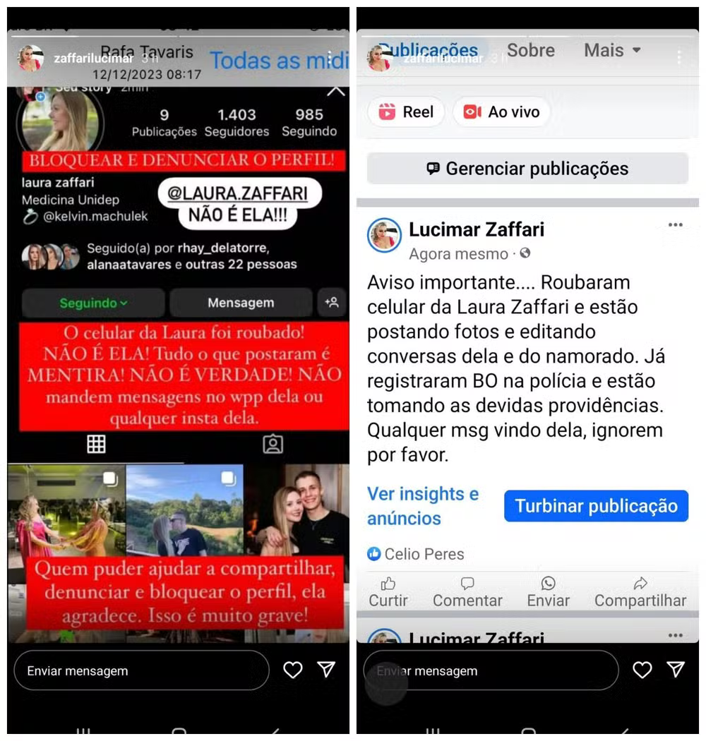 A mãe de Laura, Lucimar Zaffari, veio a público desmentir as acusações, afirmando que o celular da filha havia sido roubado e que todas as postagens eram mentirosas. Ela pediu que as pessoas não entrassem em contato com Laura, pois os criminosos continuavam a ameaçar a família.