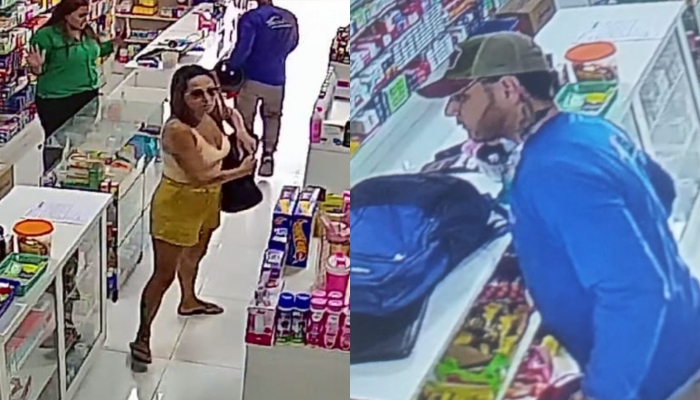 Casal do crime toca o terror e faz a limpa na Drogaria Farma, na zona Leste de Manaus; veja vídeo