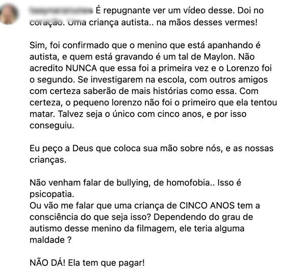 Identificada apenas pelo vulgo “Planki”, a jovem de 14 anos já havia sido registrada agredindo um jovem autista em uma rua, em uma cena lamentável capturada em vídeo por um amigo, conhecido apenas como Maylon. As imagens, divulgadas pelo perfil Justiça por Lorenzo, mostram um padrão de comportamento agressivo e perigoso, lançando luz sobre o passado sombrio dessa adolescente antes mesmo de seu envolvimento no brutal assassinato de Lorenzo. Além disso, segundo o relato de uma amiga da família da vítima, a própria adolescente ainda ameaçou o jovem autista a não denunciar a agressão, caso contrário iria apanhar mais.