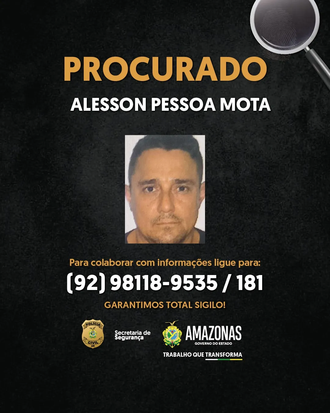 A PC-AM reforça a importância da colaboração na divulgação da imagem de Alesson Pessoa Mota, de 36 anos, condenado a 37 anos, 3 meses e 15 dias de reclusão, em regime fechado, por ser mandante do homicídio da técnica de enfermagem Viviane Costa de Castro.A condenação foi proferida pela 2ª Vara do Tribunal do Júri no dia 9 de julho deste ano.