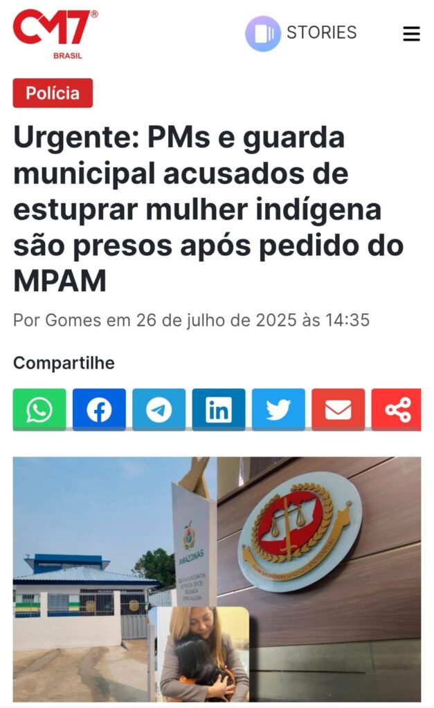 Amazonas – Um caso de violência brutal contra uma mulher indígena da etnia Kokama, de 29 anos, chocou o Amazonas e mobilizou a sociedade civil e o Ministério Público do Estado do Amazonas (MPAM) em uma resposta rápida e firme. A vítima, que sofreu estupros coletivos por quatro policiais militares e um guarda municipal durante nove meses de custódia irregular na 53ª Delegacia de Polícia de Santo Antônio do Içá, entre novembro de 2022 e agosto de 2023, finalmente viu os primeiros passos rumo à justiça neste sábado, 26 de julho de 2025. A prisão preventiva de três policiais e do guarda municipal, além do pedido de prisão de outros dois PMs, foi deferida menos de 24 horas após a cobrança pública da Virada Feminina do Amazonas, liderada por Cileide Moussallem, que trouxe o caso à tona com um vídeo viral.