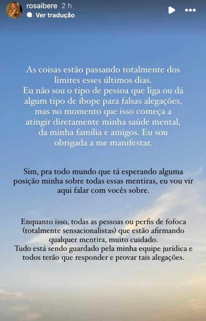 Após a repercussão do vídeo da mãe de Thalis nas redes sociais, a blogueira se manifestou em seus stories afirmando que não é o tipo de pessoa que dá íbope para falsas alegações até começar a atingir diretamente sua saúde mental, e que as acusações contra ela estão passando dos limites.