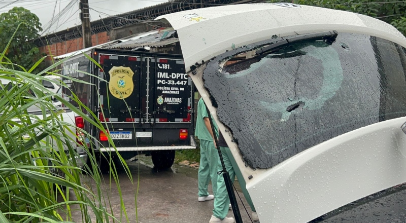 A ação foi tão intensa que ambos os veículos – a S10 e o Gol branco – foram atingidos pelos projéteis. Mesmo sob forte chuva, equipes do Departamento de Polícia Técnico-Científica (DPTC) e do Instituto Médico Legal (IML) realizaram a perícia minuciosa no local, recolhendo cápsulas e buscando evidências nos veículos e no corpo da vítima.