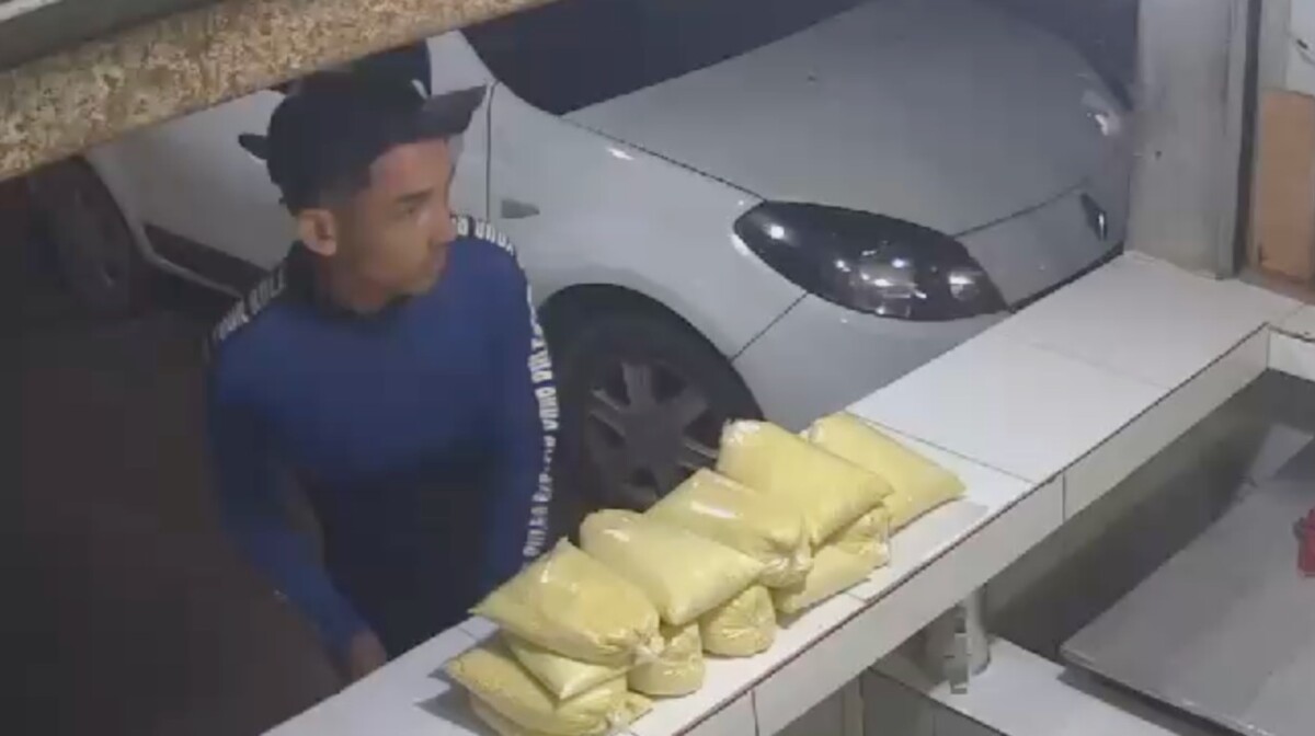 O suspeito frustrou-se com a renda do caixa e exigiu um saco com farinha antes de fugir.