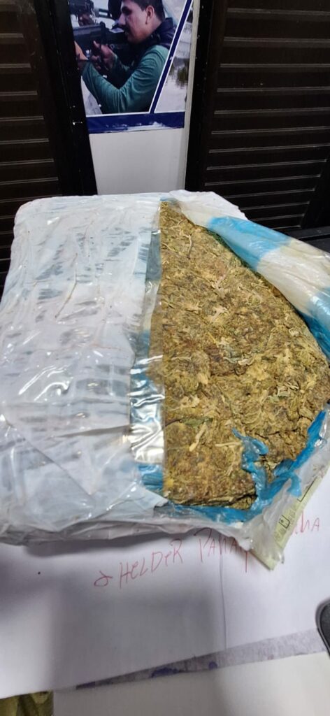 Durante o procedimento, os cães de faro narcótico da PMAM sinalizaram a suspeita de entorpecentes dentro de umas sacas de fibra. Ao terem aberto as encomendas, os policiais encontraram em meio a carga de tucumã, os seis tabletes de maconha do tipo skunk.