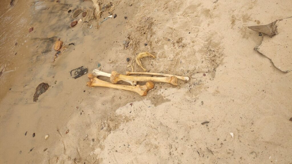 A ossada foi encontrado por populares e trabalhadores que estavam próximos ao local e acionaram imediatamente a polícia. Ossos humanos foram identificados como sendo região da perna e uma arcada dentária.Devido a seca que atinge a região nessa época, restos mortais tem sido encontrados com mais frequência nas margens dos rios.