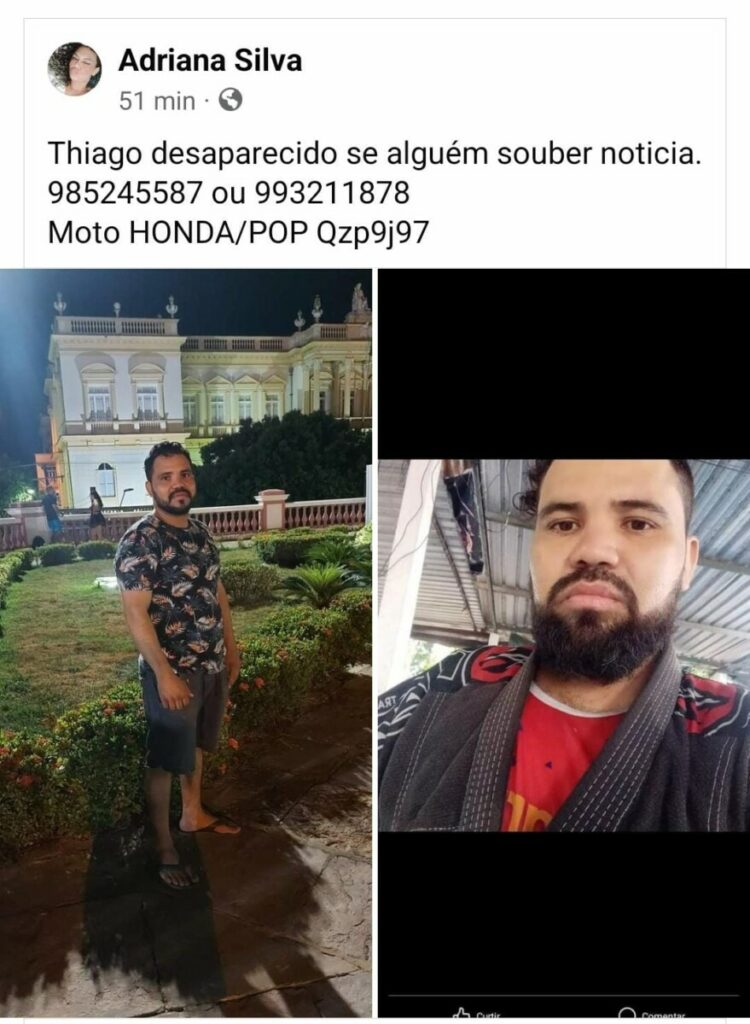 De acordo com informações, o entregador de delivery estava desaparecido desde a noite de ontem, quando saiu com a sua moto, da marca Honda, modelo Pop, placa QZP9J97, e não deu mais notícias. Uma postagem acerca do sumiço dele chegou a ser feita nas redes sociais.