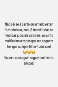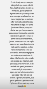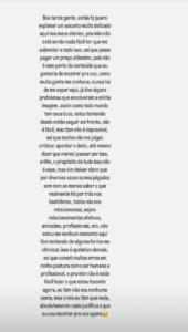 No texto, a profissional faz um desabafo em tom de alerta para outras mulheres que estão sendo vítimas de violência doméstica.