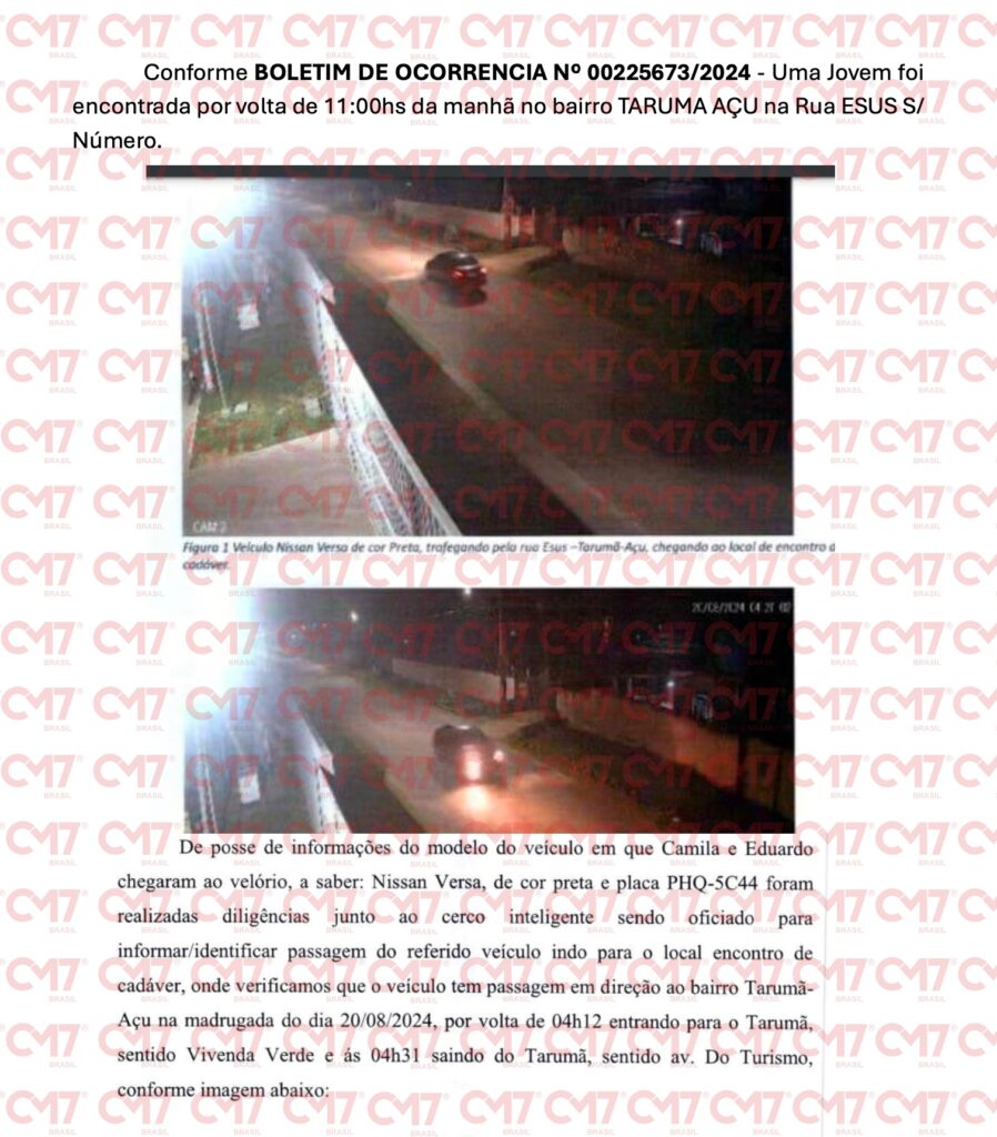 Geovana Costa Martins desapareceu no final de agosto de 2024, tendo o corpo sido encontrado com sinais de agressão e tortura no dia 20 de agosto. A polícia rapidamente direcionou as investigações para Camila Barroso e Eduardo Gomes, inicialmente apontados como responsáveis pelo crime. O relatório particular apontou que inicialmente ambos teriam sido vistos juntos em diversas ocasiões antes e após o assassinato, inclusive no dia do crime, quando foram ao lava-jato para tentar eliminar evidências.