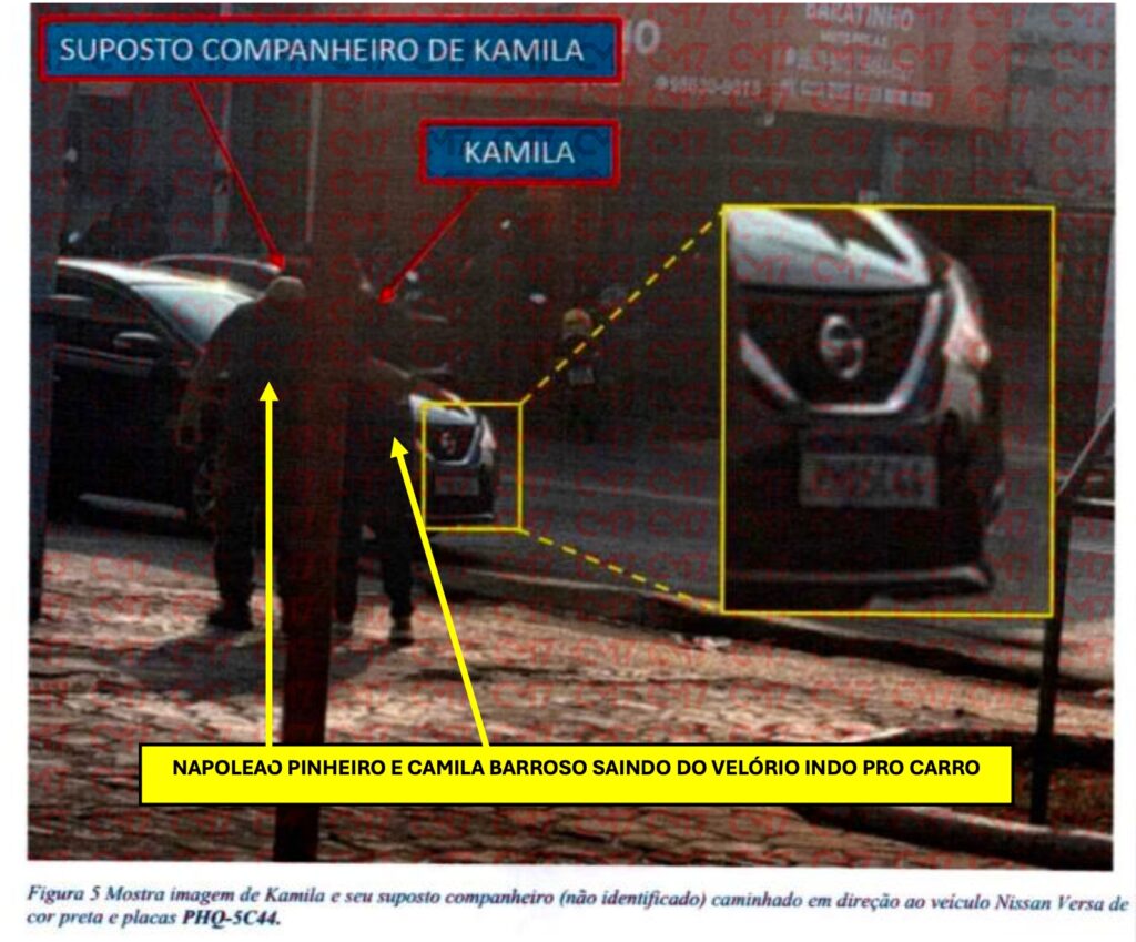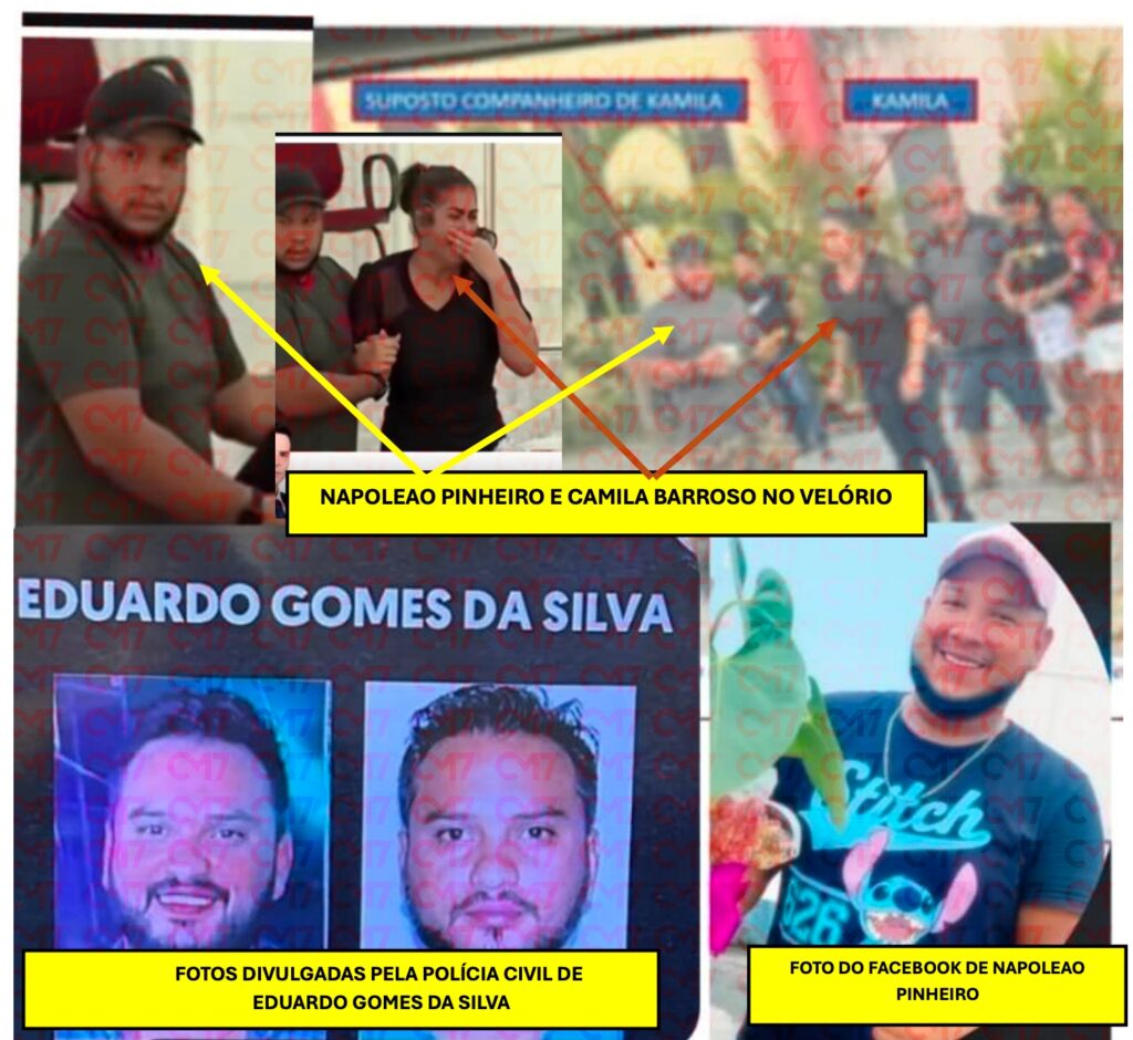 Além disso, a perícia encontrou evidências ligando o carro de Camila Barroso ao local onde o corpo foi deixado. Inicialmente, a Polícia Civil chegou a apontar Eduardo Gomes da Silva como um dos envolvidos, mas após investigação particular, ficou claro que Eduardo foi confundido com outros dois suspeitos: Napoleão Pinheiro Lima, um dos frequentadores do velório da vítima, e Antônio Chelton Lopes de Oliveira, que o relatório particular diz ser o namorado de Camila.