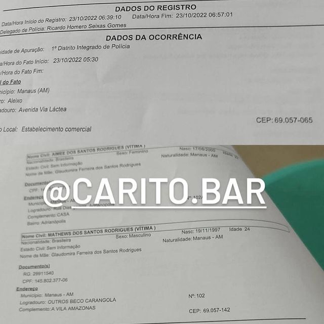 De acordo com o boletim de ocorrência registrado no 1 DIP, bairro Praça 14, zona sul. As vítimas são Matheus dos Santos Rodrigues e Aimee dos Santos Rodrigues, ambos irmãos, que foram ao estabelecimento juntos com outros amigos para comemorar um aniversário e que no final da festa houve uma confusão.