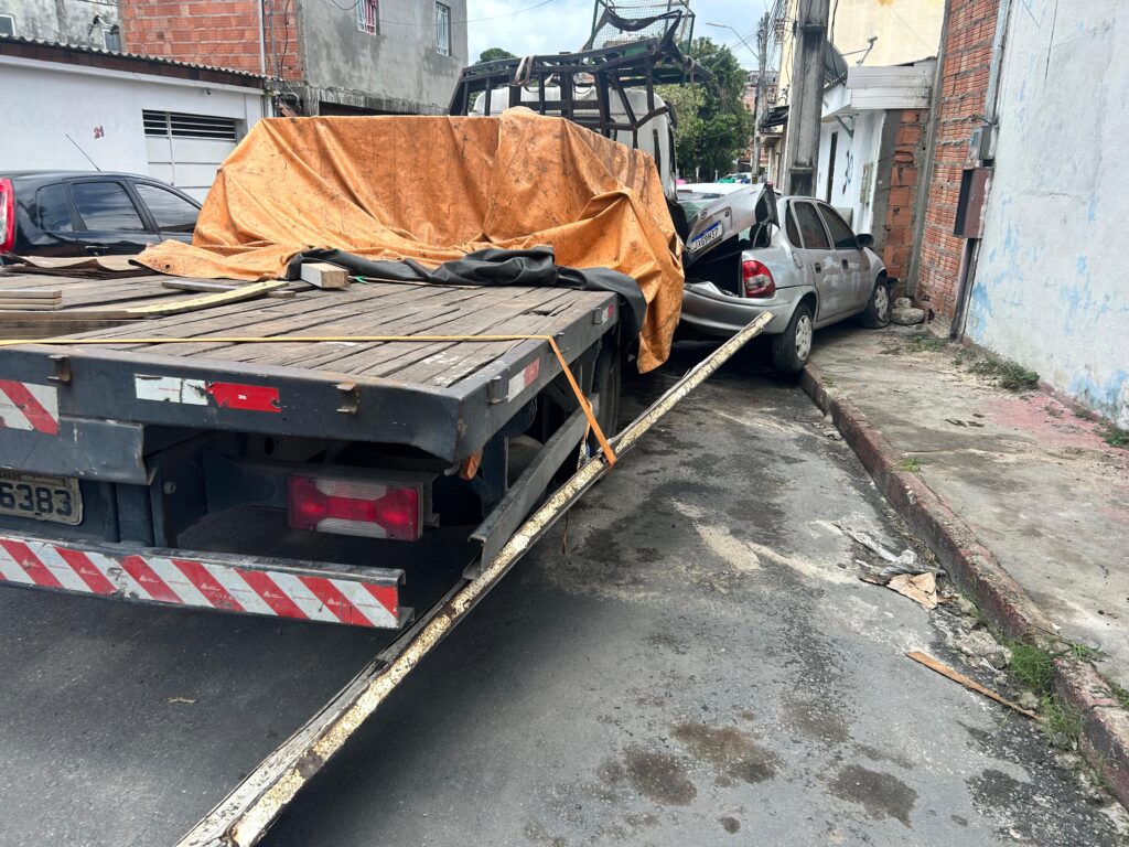 Em uma tentativa de escapar, a dupla abordou um caminhoneiro que estava fazendo uma entrega na rua Nelson Mandela, obrigando-o a entregar seu caminhão. O veículo foi então levado pelos criminosos em direção à rua Guanabara, no bairro Novo Reino, onde a fuga se tornou ainda mais caótica, com várias colisões envolvendo outros carros.