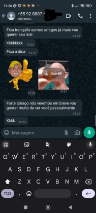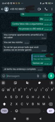 Nas mensagens Luilson com o intuito de intimidar, diz que sabe onde Marcelo mora, que contatará um corretor para alugar um apartamento no mesmo local que Marcelo e logo encontrará ele pessoalmente. Além de dizer que será um prazer conhecê-lo e que ele se arrependerá; veja