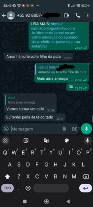 Amazonas – Durante essas últimas semanas, o diretor do Jornal Notícias Populares do Amazonas, Marcelo Souza, vem sofrendo ameaças e perseguições por parte de um apoiador do prefeito de Juruá, Dr. Júnior.