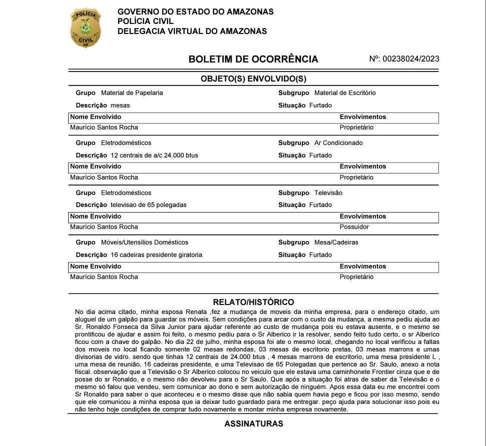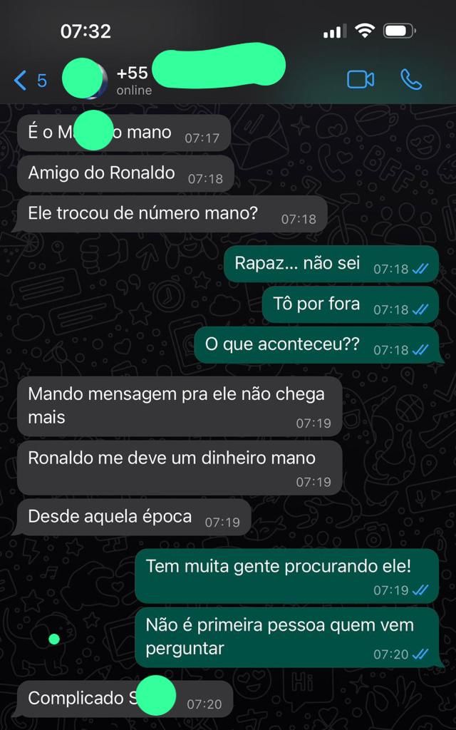 Procurado pela reportagem no número 9915x-xxx4, Ronaldo não atendeu as ligações, sempre fora de área e as mensagens enviadas não tiveram respostas. Em seu endereço no bairro Alvorada, zona Centro-Oeste, também não foi localizado.
