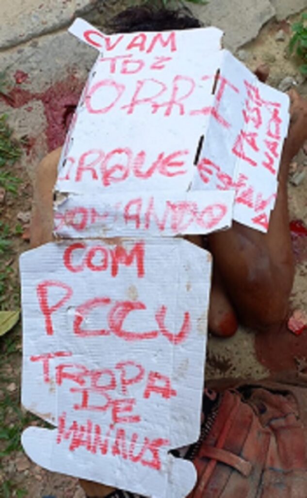 De acordo com informações, a vítima era ligada ao tráfico de drogas da região e foi morta com cerca de 13 tiros por dois pistoleiros. Os executores, após cometerem o crime, ainda deixaram sobre o corpo de José um bilhete em que havia escrito: “CVAM TD2 MORRI PORQUE ESTAVA JOGANDO COMO PCCU TROPA DE MANAUS PASSA NADA”. Em seguida, fugiram por uma área de mata.