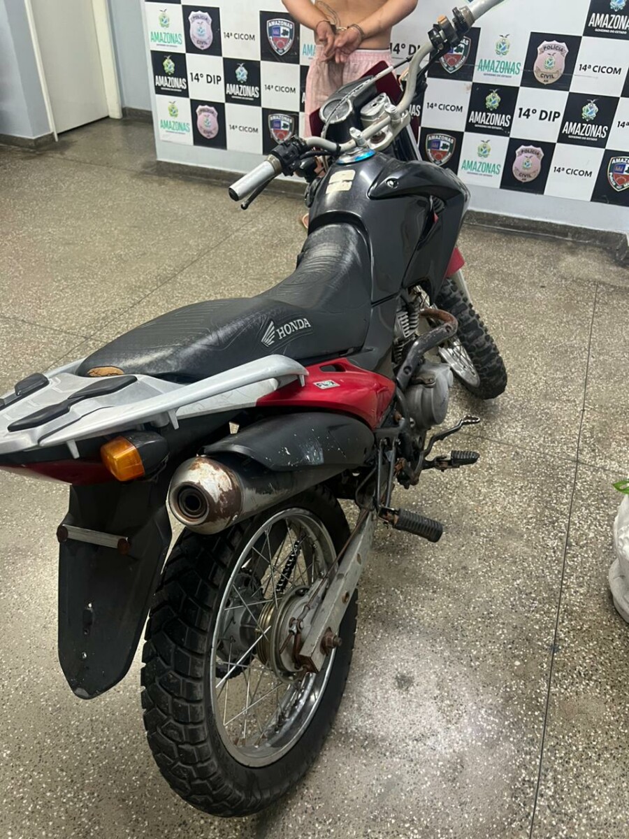 Manaus – A Polícia Militar do Amazonas através das equipes da 14 Companhia Interativa Comunitária – 14 Cicom, prendeu homem identificado como Jose Sanderson Garcia Barreto, de 30 anos, nesta quarta-feira (25). O criminosos estava com outros dois comparsas cometendo vários ‘arrastões’‘ em ônibus de rotas no bairro Cidade Nova, na zona norte de Manaus. Cinco aparelhos celulares, um simulacro de arma de fogo e uma motocicleta foram apreendidas.