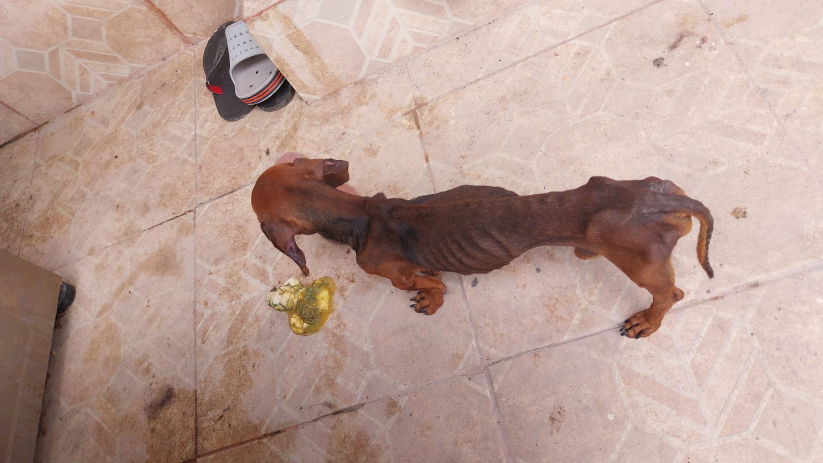 A viatura foi acionada para verificar a situação de dois cães supostamente mantidos em condições precárias. Ao chegar ao local, a polícia encontrou um cachorro morto em via pública, em frente à residência do suspeito. O homem alegou que o animal não pertencia a ele e que alguém o teria abandonado ali. No entanto, dentro da casa, foi localizado outro cão em estado crítico, extremamente debilitado, com aparência esquelética e sinais evidentes de doença.