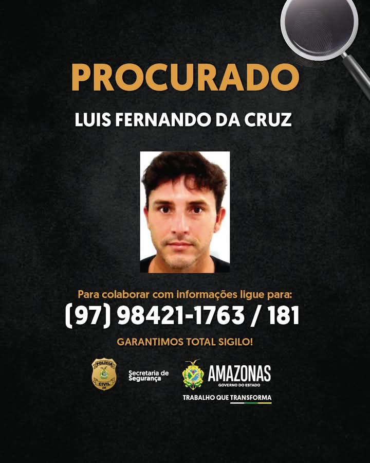 A PC-AM solicita que qualquer informação sobre o paradeiro de Luís Fernando da Cruz seja comunicada pelos números (97) 8421-1763, disque-denúncia da DEP de Humaitá, ou pelo 181, da Secretaria de Segurança Pública do Amazonas (SSP-AM). “A identidade do denunciante será preservada”, garantiu a autoridade policial.