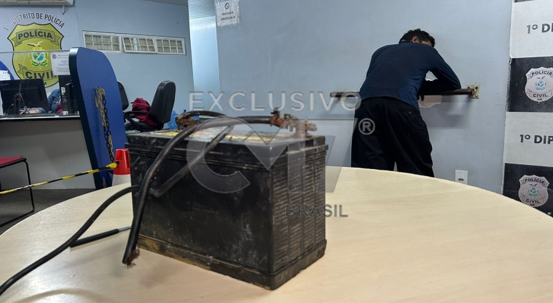 As informações repassadas é que o suspeito teria serrado os cabos com uma faquinha de pão para roubar uma bateria de um caminhão que estava avaliada entre R$ 800 a R$ 1000.