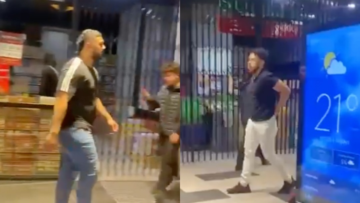 Nas imagens, podemos observar que três rapazes aparecem discutindo com outros três e em um determinado momento, eles quase saem na porrada, no entanto, um deles puxa uma faca e eles a princípio se dispersam.