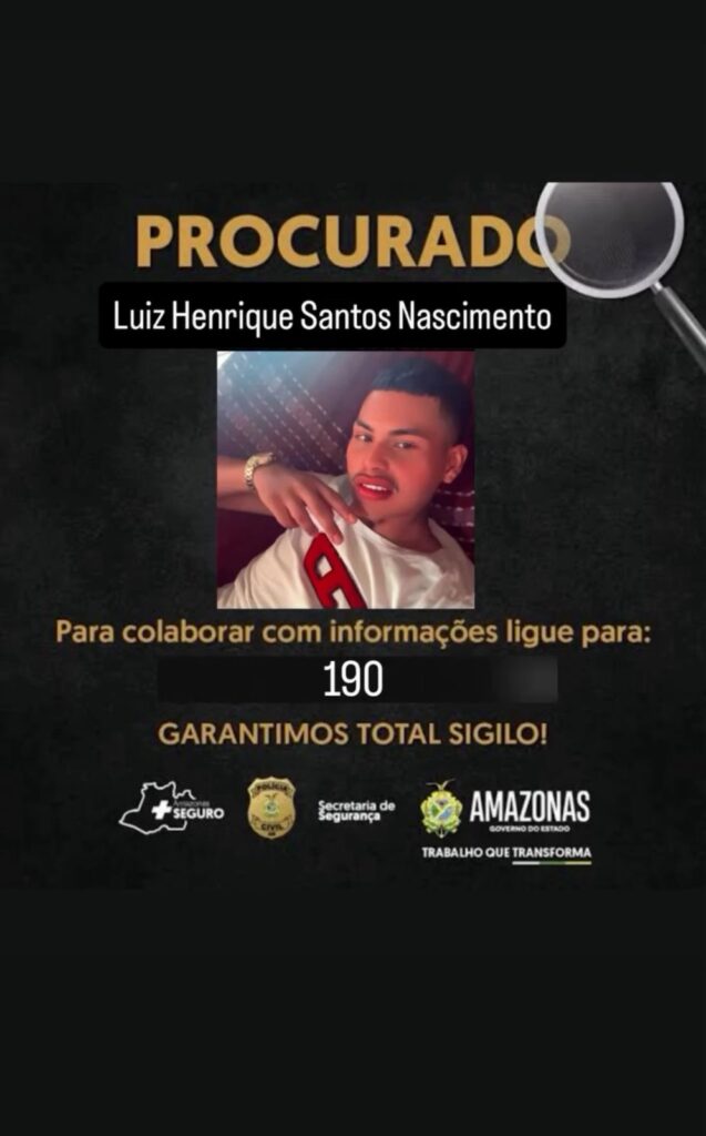 Luiz Henrique está sendo procurado. Informações sobre seu paradeiro podem ser repassadas, de forma anônima, ao número 190.