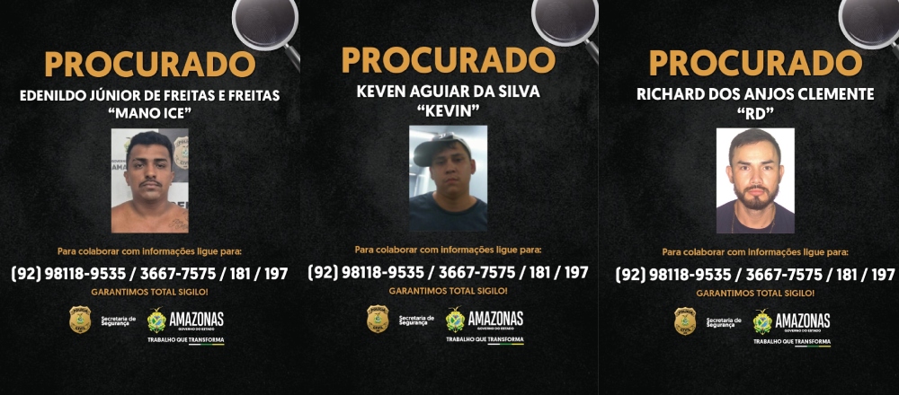Continuam foragidos Edenildo Júnior de Freitas e Freitas, o conhecido como “Mano Ice”, Keven Aguiar da Silva, o vulgo “Kevin” e Richard dos Anjos Clemente, o “RD”.