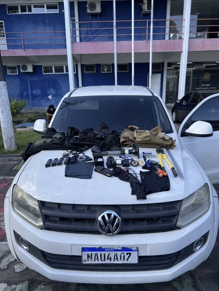 Ao tomar conhecimento do fato, o delegado diligenciou com sua equipe até o local e fizeram o levantamento do veículo utilizado no crime, uma VW/AMAROK BRANCA. Em seguida solicitou que o carro fosse parado onde estivesse circulando nas ruas de Manaus.
