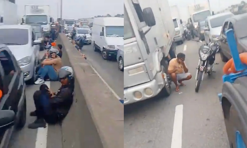 Vídeos gravados por motoristas e pedestres mostram cenas de caos, com pessoas buscando abrigo enquanto tiros eram disparados de ambos os lados. Muitos motoristas abandonaram seus veículos na avenida, tentando se proteger do fogo cruzado. Trabalhadores que estavam a caminho do serviço também foram surpreendidos, se jogando no chão ou se escondendo atrás de obstáculos, em uma tentativa desesperada de escapar dos disparos.