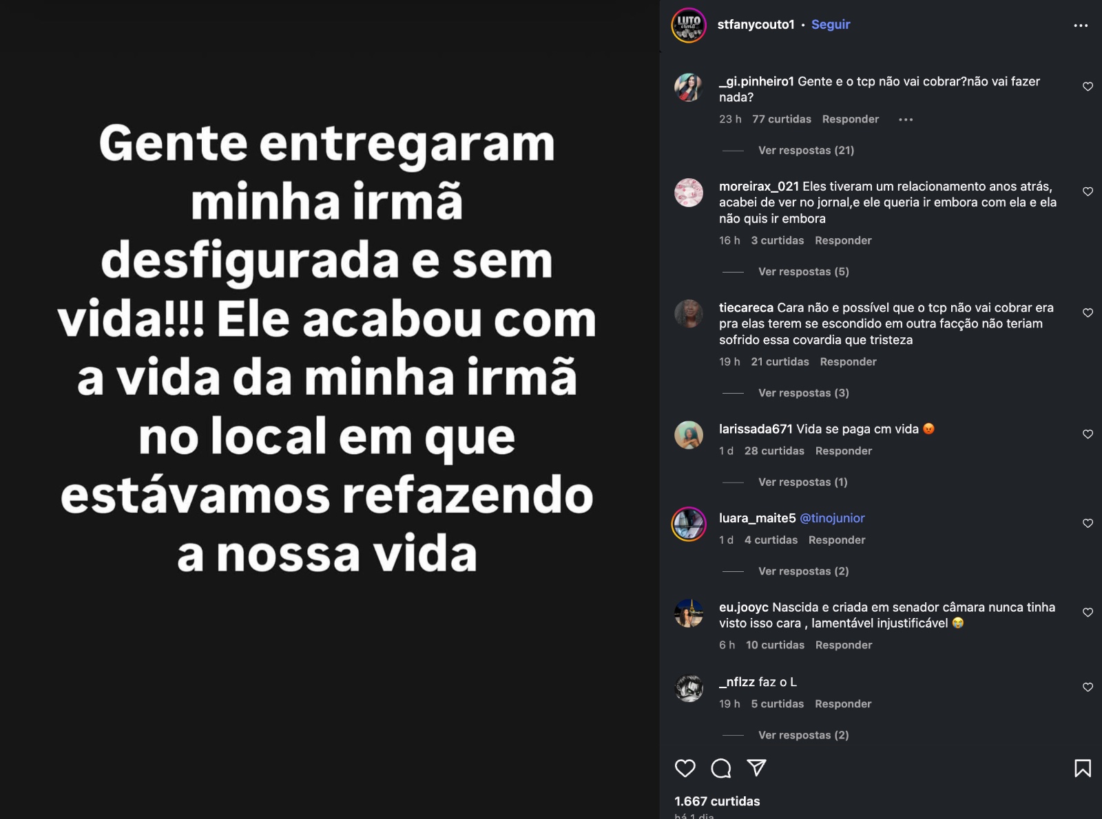Diante da recusa, homens de seu grupo a arrastaram do evento, torturando-a e espancando-a em uma sessão de violência que, segundo moradores, visava punir sua resistência e intimidar outras mulheres.A irmã de Sther, Stefany, fez postagens emocionadas nas redes sociais, lamentando a perda e comentando o vídeo em que Sther aparece dançando. “O corpo dela foi entregue desfigurado, jogado na porta da casa da nossa mãe”, escreveu.