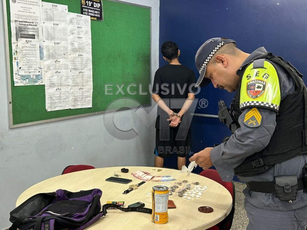 Manaus – Na tarde desta terça-feira (1°), a Polícia Militar do Amazonas (PMAM) recebeu denúncias da população do bairro Cidadão 10, na Zona Norte da capital amazonense, sobre um jovem que estaria circulando com uma lata de achocolatado, comercializando entorpecentes.