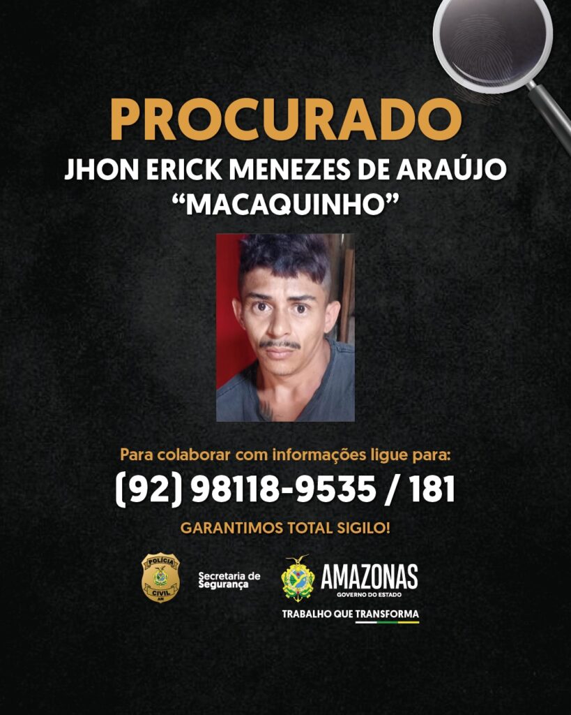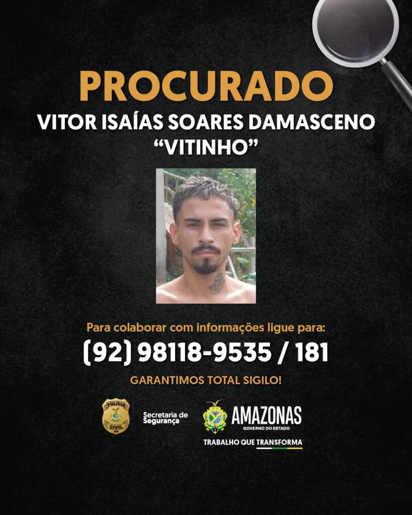 Outros dois homens, identificados como Jhon Erick Menezes de Araújo, vulgo ‘Macaquinho’, e Vitor Isaías Soares Damasceno, vulgo ‘Vitinho’, seguem foragidos.