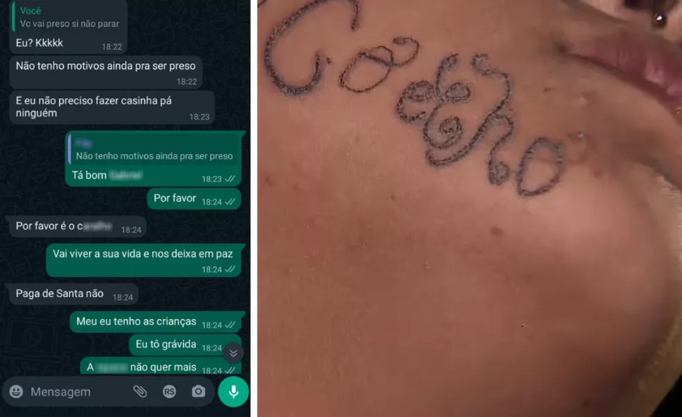 A mãe afirmou que a jovem foi agredida ao resistir a aplicar a tatuagem. “Ela está com o olho roxo. E ele a forçou a gravar um vídeo autorizando a tatuagem. Minha filha falou que gravou com medo de algo pior acontecer”, continuou.