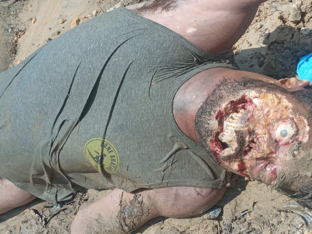 O estado de decomposição do corpo é visível nas imagens perturbadoras compartilhadas online, retratando um cenário verdadeiramente chocante.