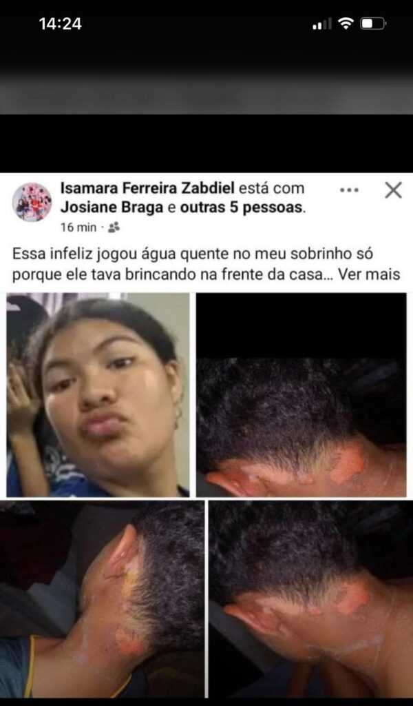 Amazonas – A dor de uma mãe transformou-se em revolta no município de Jutaí, interior do Amazonas, após seu filho de 9 anos ser vítima de um ato cruel: Manuele de Souza Matos, uma vizinha, é acusada de jogar água fervente nas costas da criança, causando queimaduras graves. A mãe da vítima liderou uma manifestação em frente à casa da suspeita, exigindo justiça em um caso que chocou a comunidade.