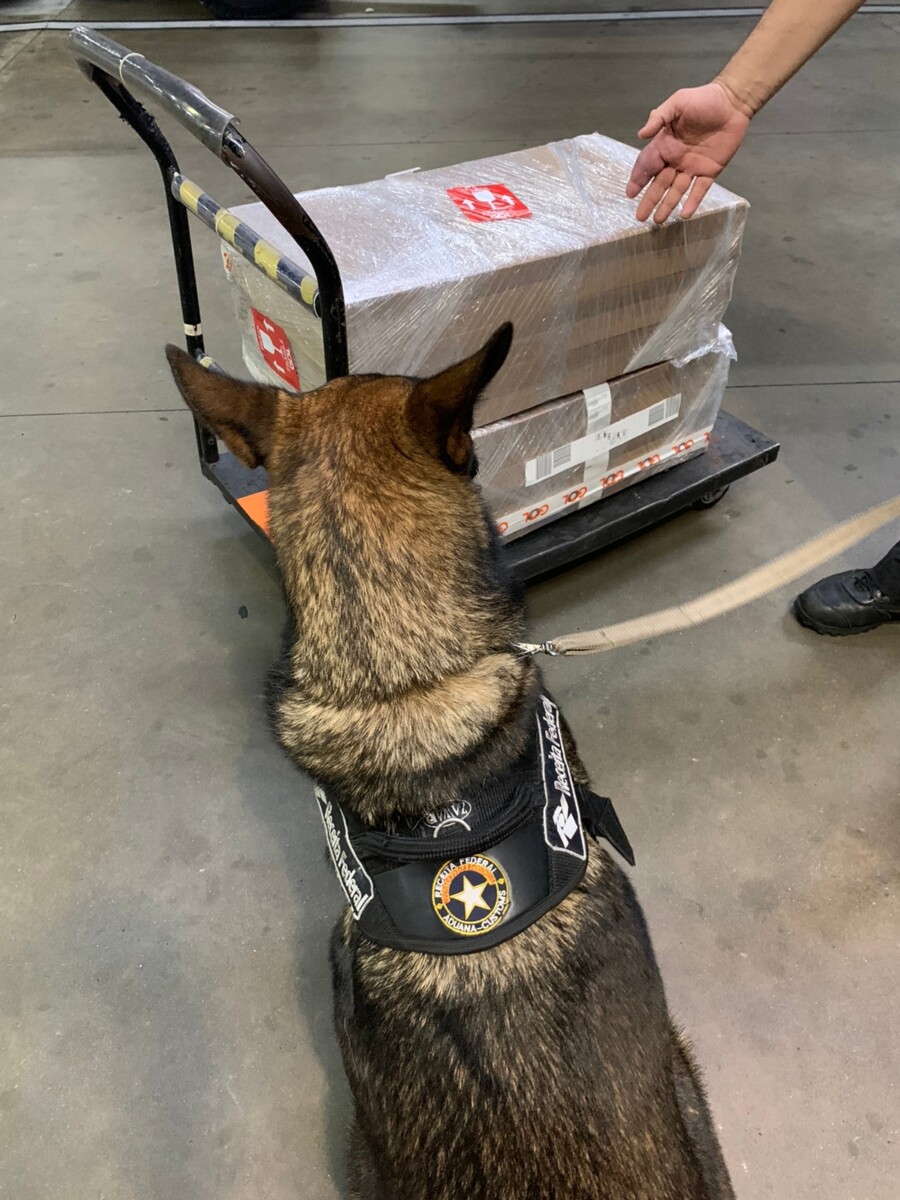 Após realizar análise de risco aduaneiro, a fiscalização da Receita Federal identificou bagagens saindo de Manaus apresentavam suspeita de presença de drogas. A Equipe K9 do órgão foi acionada.