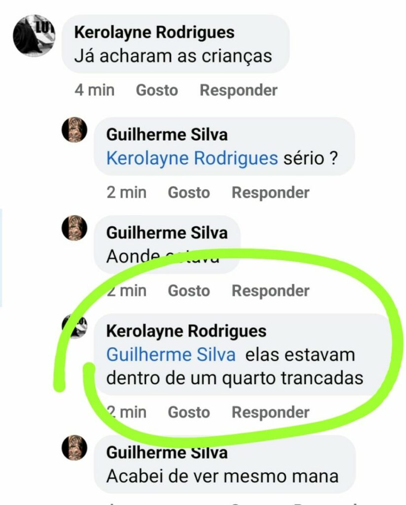 Após uma intensa procura, as crianças foram encontradas no segundo andar da residência, onde haviam se escondido. O boato havia se espalhado após o primo delas, também uma criança, relatar que viu um carro passando pelas redondezas quando elas sumiram.