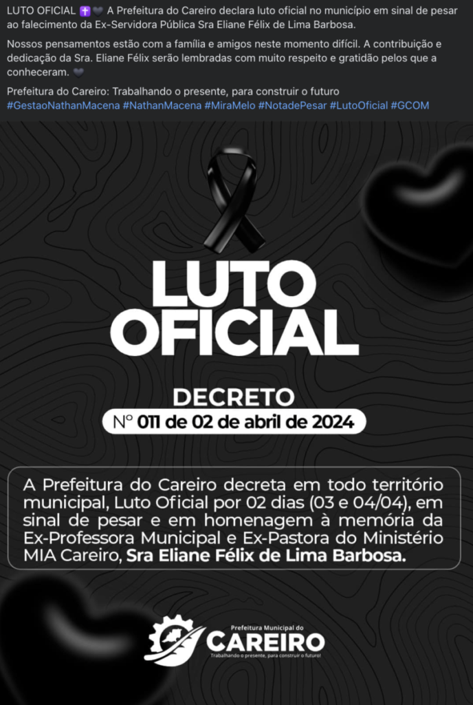 A Prefeitura de Careiro emitiu uma nota de pesar, expressando condolências à família, parentes e amigos da vítima. Enquanto isso, a investigação continua em andamento para que a justiça seja feita em nome de Eliane Félix de Lima Barbosa e de todos os afetados por essa tragédia.