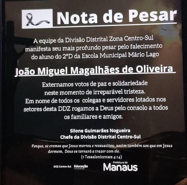 Manaus – Uma tarde que deveria ser de rotina escolar terminou em tragédia na avenida G, Conjunto Oswaldo Frota, bairro Cidade Nova, na zona Norte de Manaus. Nesta quarta-feira (15/4), uma criança identificada como João Miguel Magalhães de Oliveira morreu após ser violentamente atropelada por um motorista de aplicativo enquanto atravessava a faixa de pedestres em frente à Escola Municipal Mário Lago.