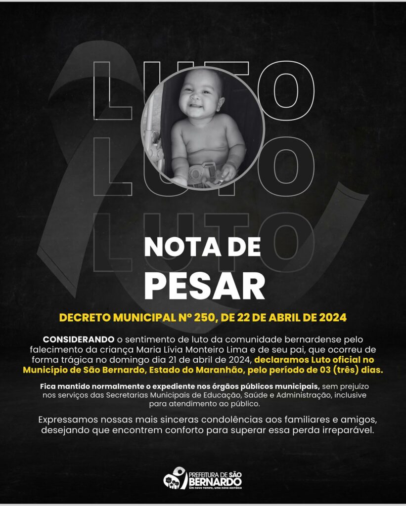 Brasil – Uma tragédia abalou o município de São Bernardo, interior do Maranhão, no último domingo (21), quando um homem identificado como Cleiso e sua filha, de apenas 1 ano, foram brutalmente assassinados a tiros em frente à própria casa, localizada no bairro Morro da Arábia, a 374 km de São Luís.