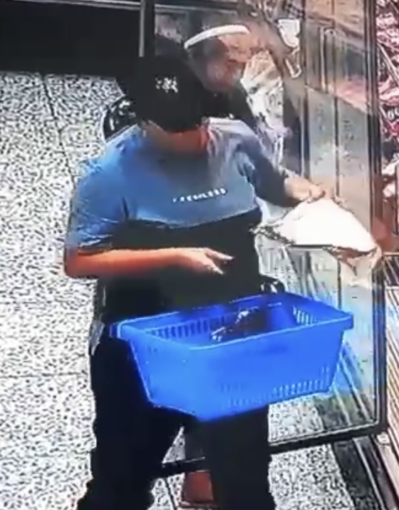 Câmeras de segurança do estabelecimento registraram todo a ação criminosa da mulher, que encheu a cestinha do supermercado de picanha a vácuo.