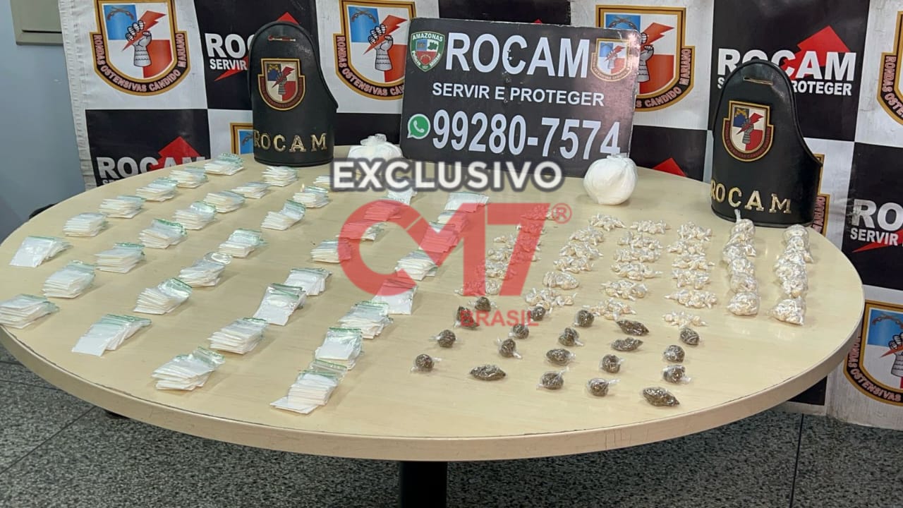 De acordo com a Polícia Militar, os agentes da Rocam detiveram um indivíduo após encontrarem mais de 1.000 trouxinhas de drogas, incluindo cocaína e maconha e oxi, além de uma balança de precisão e outros materiais usados para embalagem. Os itens, já preparados para venda, confirmaram o local como um ponto de tráfico de drogas, conhecido como “boca de fumo”.