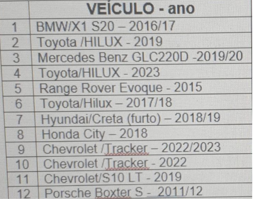 Segue a listagem com os veículos apreendidos até o momento: