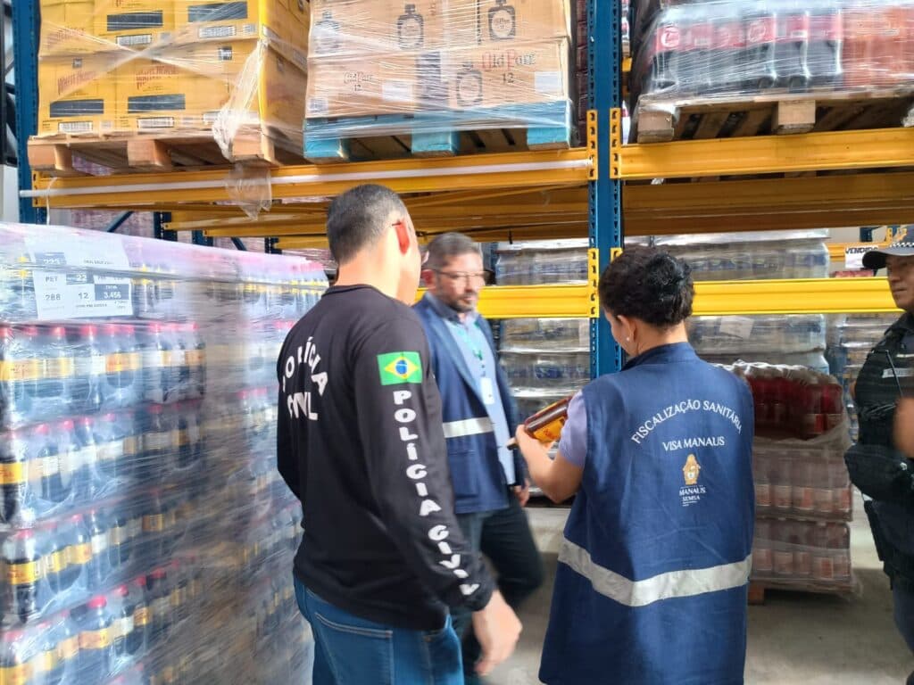 Amazonas – Nesta quinta-feira (09), a Polícia Civil do Amazonas (PC-AM), por meio da Delegacia Especializada em Crimes contra o Consumidor (Decon), em ação conjunta com a Vigilância Sanitária Municipal (Visa Manaus) e o Serviço de Atendimento e Proteção ao Consumidor (Procon Manaus), realizou uma operação de fiscalização em distribuidoras de bebidas situadas na feira do Fuxico, bairro Tancredo Neves, zona leste de Manaus.